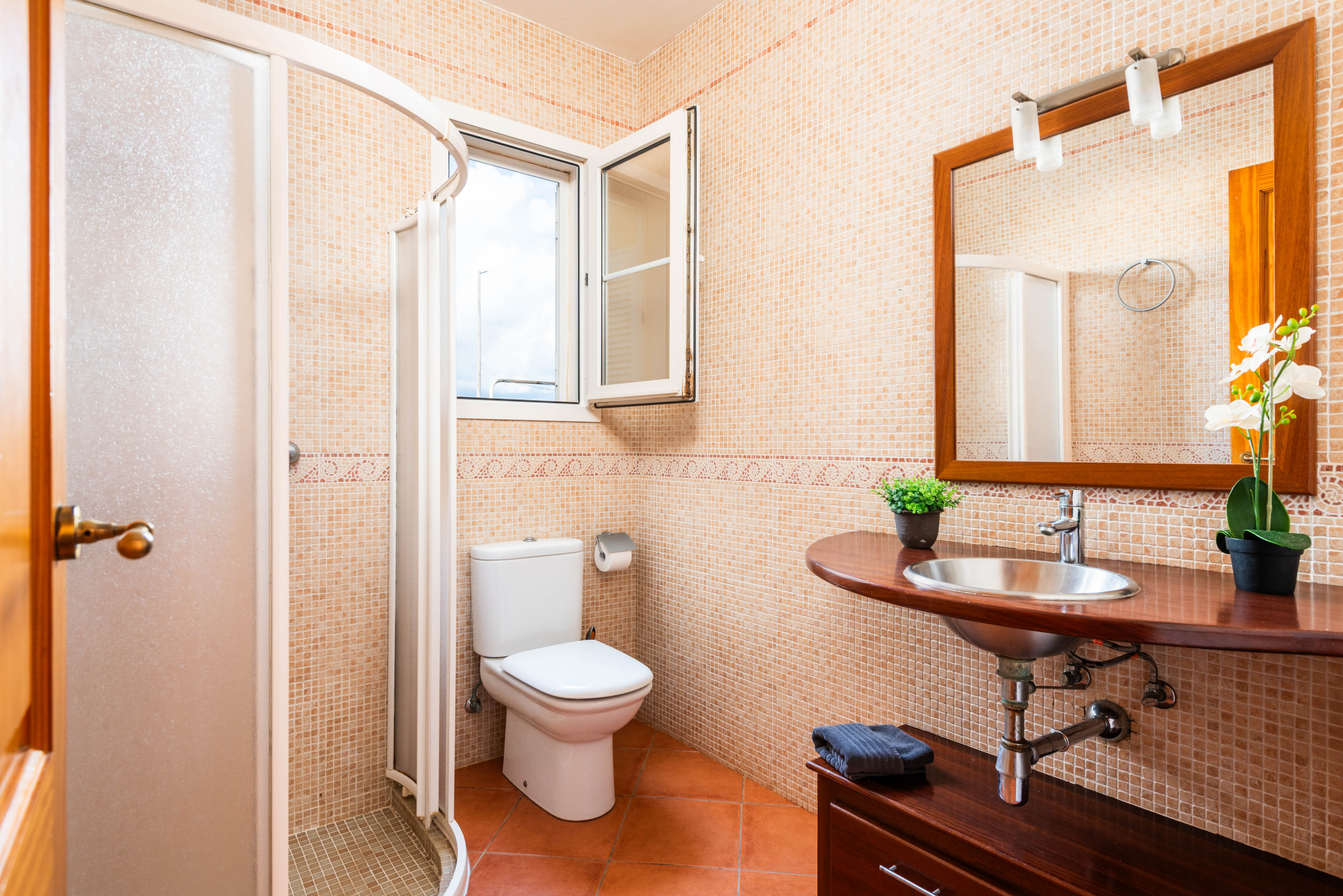 La villa cuenta con dos baños completos: uno con ducha y otro con bañera, proporcionando comodidad y privacidad para todos los huéspedes. La cocina independiente está totalmente equipada con electrodomésticos de última generación, incluyendo lavadora, lavavajillas, horno, microondas, cafetera, tostadora, y una amplia variedad de menaje.